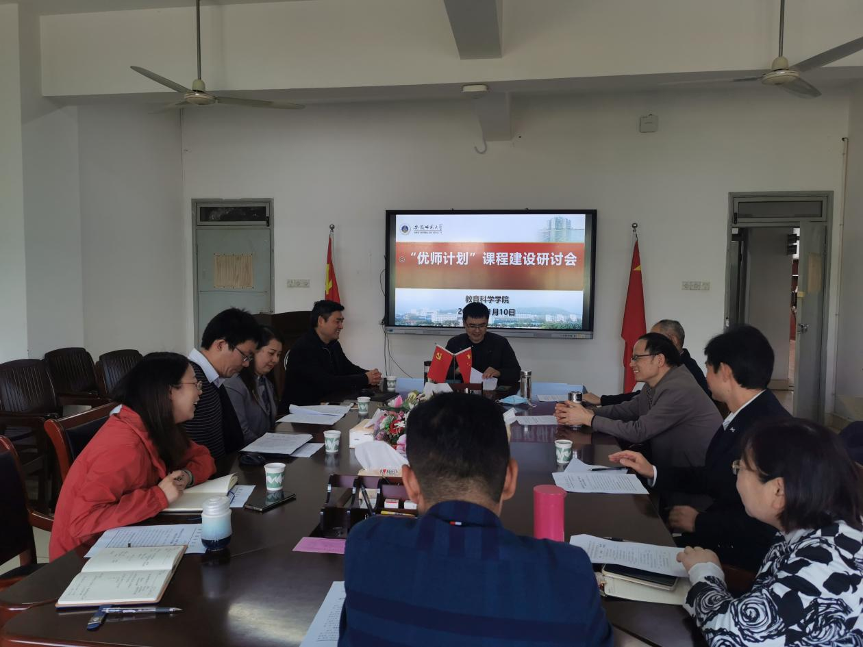 为深入贯彻落实习近平总书记重要回信精神加强“优师计划”,全面开展“优师计划”课程建设,提高学校人才培养能力和质量,11月10日,学校组织召开“优师计划”课程建设专题研讨会,教育科学学院院长李宜江、副院长韩建涛,教务处副处长胡炜佳,生命科学学院教师杨安娜,教师教育课程相关负责人及骨干教师等参加研讨会。会议由韩建涛主持。