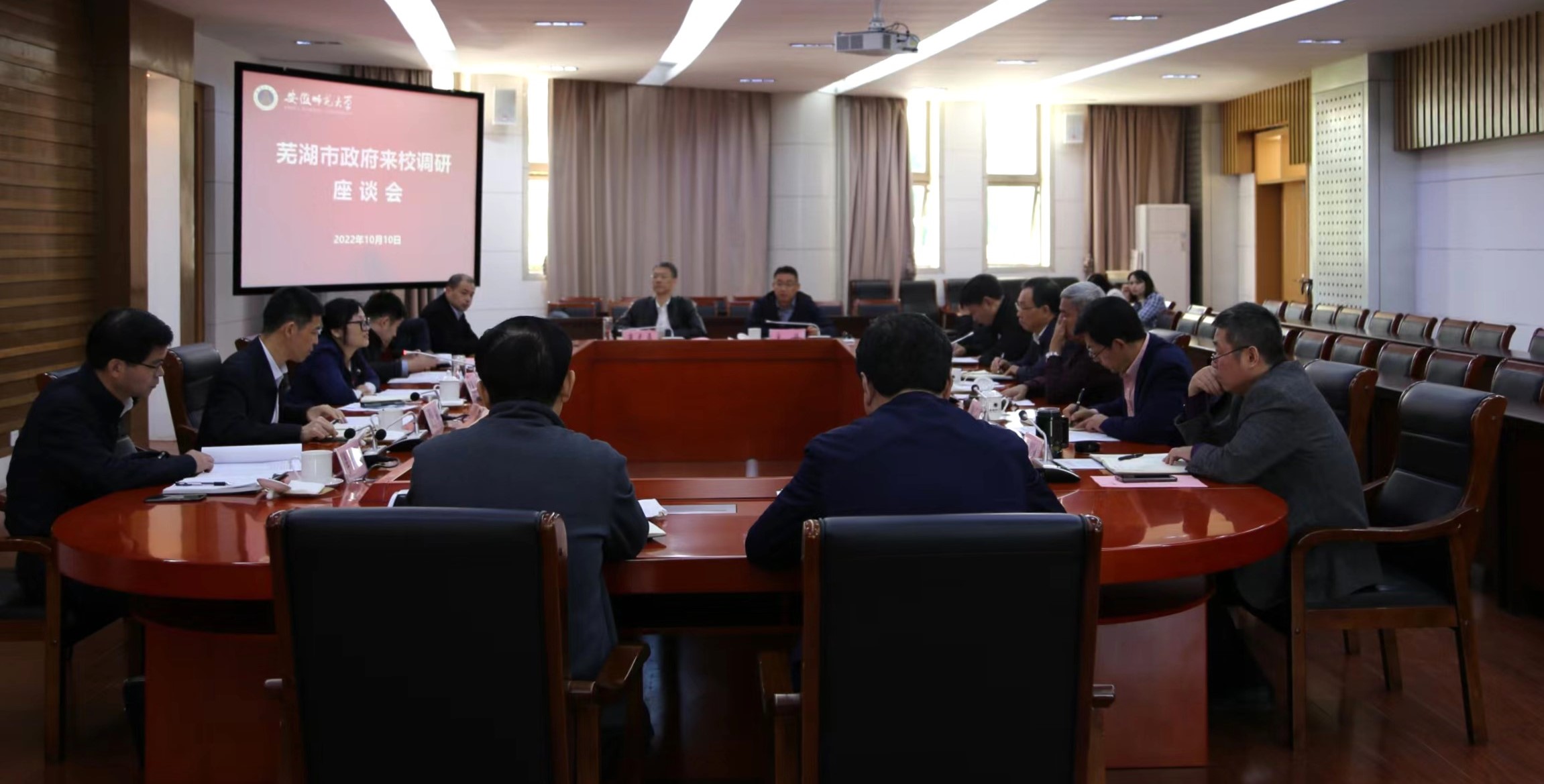 10月10日,芜湖市副市长朱的娥带领市政府办公室、教育局、科技局、财政局、发改委等部门负责同志一行来校调研“共性技术创新实验室”和学校“基础教育振兴行动计划”推进情况。调研座谈会在花津校区会议中心第一会议厅举行。校党委书记胡朝荣主持会议。校党委常委、副校长朱家存,学校办公室、发展规划处、人事处、教务处、科研处、社会合作处、财务处、总务处等部门负责同志参加座谈会。