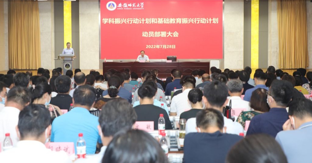 7月28日下午,学校在实习实训中心一楼报告厅召开学科振兴行动计划和基础教育振兴行动计划动员部署会,深入学习贯彻习近平总书记关于教育的重要论述,认真贯彻落实省委重要决策部署,统一思想、凝心聚力,抢抓机遇、攻坚克难,全面动员部署学校两大振兴行动计划,着力提升办学综合实力与核心竞争力,奋力开创高水平大学建设新局面。校党委书记胡朝荣主持会议,校长李亚栋院士解读并部署“两大行动计划”。全体在校校领导,全校副处级及以上干部,校院两级学术委员会成员,校教代会执委会成员以及各学院教师代表参加会议。