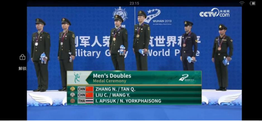 2019年,谭强(左三)在第七届世界军人运动会羽毛球男子双打比赛中获得冠军
