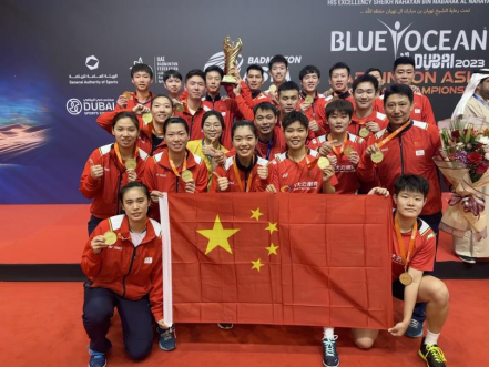 谭强(四排右一)荣获2023年亚洲羽毛球混合团体锦标赛冠军