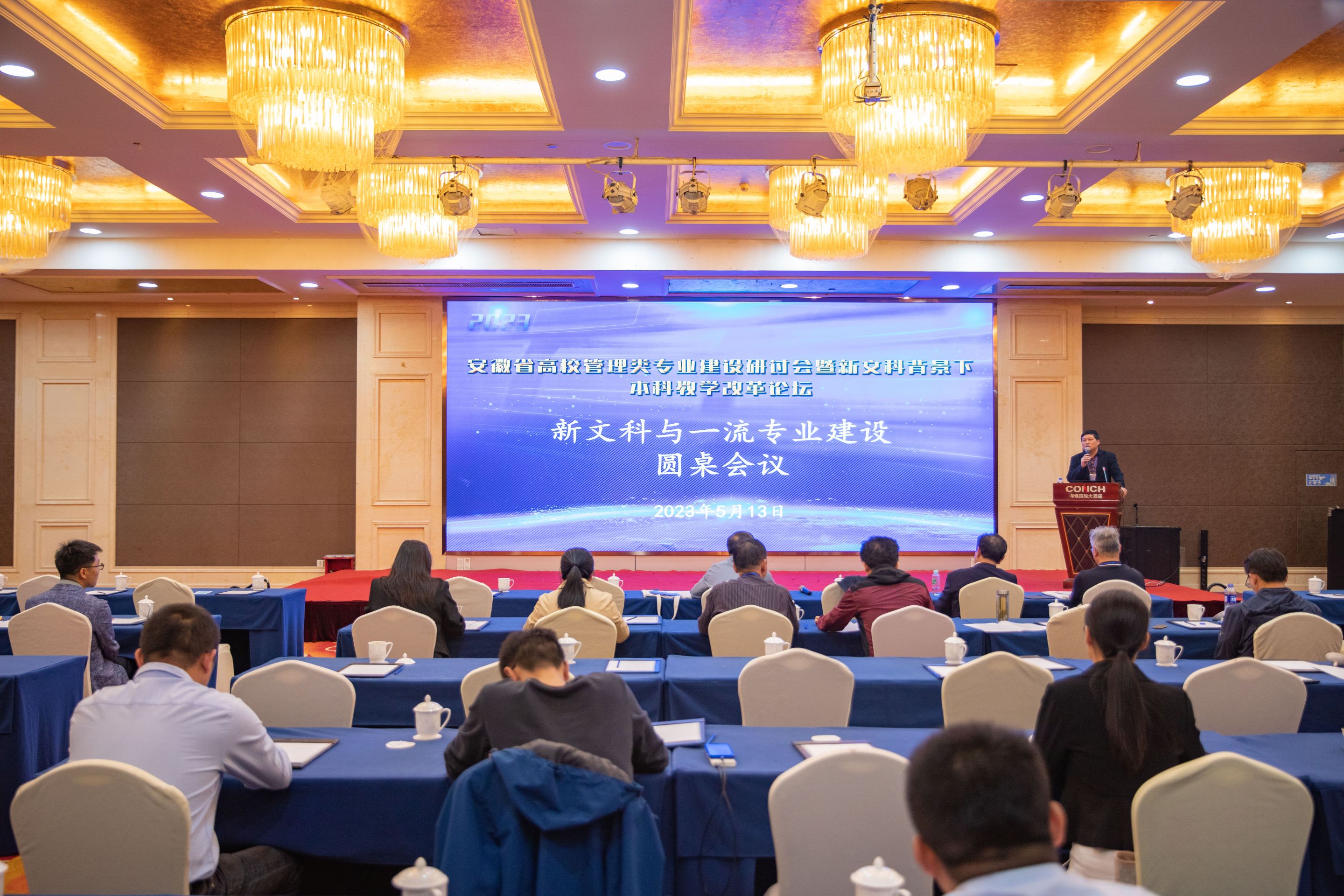 主题报告结束后举办了新文科与一流专业建设圆桌会议,会议由安徽工业大学经济与管理学院院长、安徽省管理学学会副理事长汪和平教授主持,与会专家围绕新文科与一流专业建设进行了深入研讨交流,我校经济管理学院副院长伍旭中教授进行了专题分享交流发言。