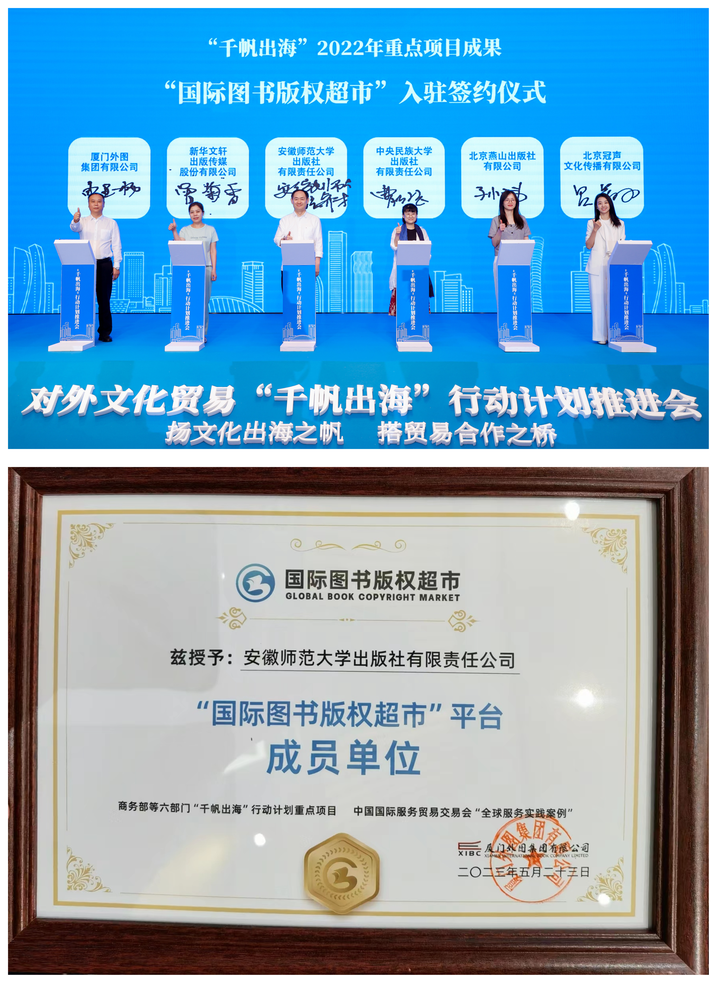 国际书展是图书交流的平台,也是出版人互相学习交流的契机。“第七届东南亚中国图书巡回展”(泰国会场)适逢“第40届马来西亚吉隆坡国际书展”,应厦门外图集团邀请,安徽师范大学出版社社长张奇才率队于5月24日至6月1日参加了相关活动,着力加强与国外出版单位的联系和沟通,为出版社国际业务的开展积聚资源。与此同时,安徽师范大学出版社加入了“国际图书版权超市”项目,并现场签约,该项目已入选商务部等六部门对外文化贸易“千帆出海”行动计划。