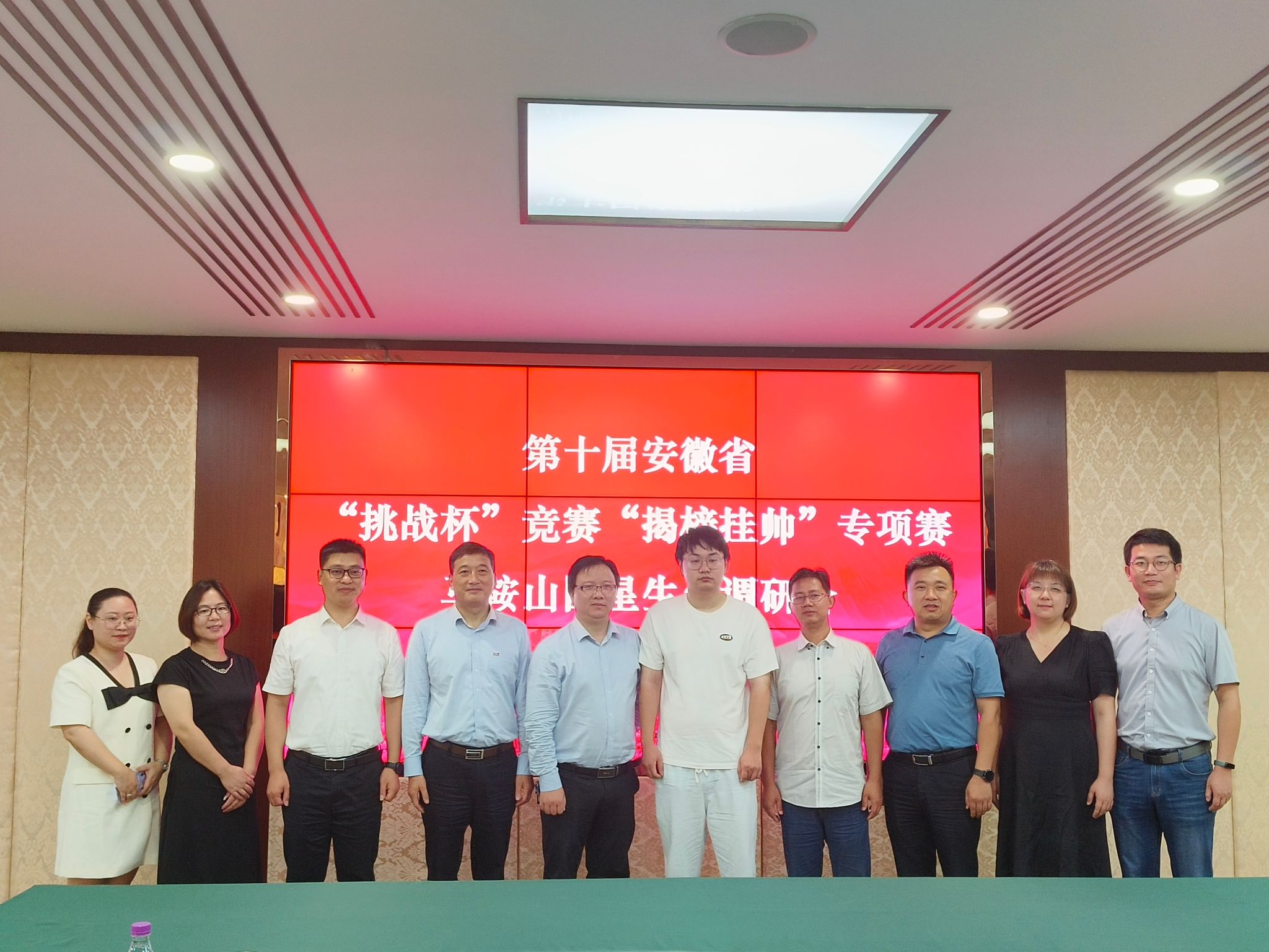 “揭榜挂帅”赛道,全省共发布24个榜题,每题仅有1个擂主团队进入省级决赛答辩。今年7-9月,学校组织参赛师生先后赴安徽皖宝矿业股份有限公司石灰分公司(池州市)、安徽国星生物化学有限公司(马鞍山市)、安徽中微微元生物科技有限公司(蚌埠市)实地调研洽谈。在9月25日进行的现场赛中,我校化学与材料科学学院胡奇、马惜晨等同学项目《妙“吡”生花:改良催化体系优化吡啶碱合成工艺》(指导教师:章青、梅冠东、张薇)获得一等奖,并与安徽国星生物化学有限公司现场签约。生命科学学院张凯路、柯日耀等同学项目《益菌相伴:益生菌常温保存技术研发》(指导教师:刘爱民、陈绍兴、汪昌保),地理与旅游学院汪子韩、胡俊康等同学项目《自上而下的中国区域碳排放估算方法研究》(指导教师:麻金继、吴文涵)获得二等奖,计算机与信息学院姜晨雨、汪玉叶等同学项目《基于充电桩的智慧灭火方案》(指导老师:陈付龙、陈士县)获得三等奖。