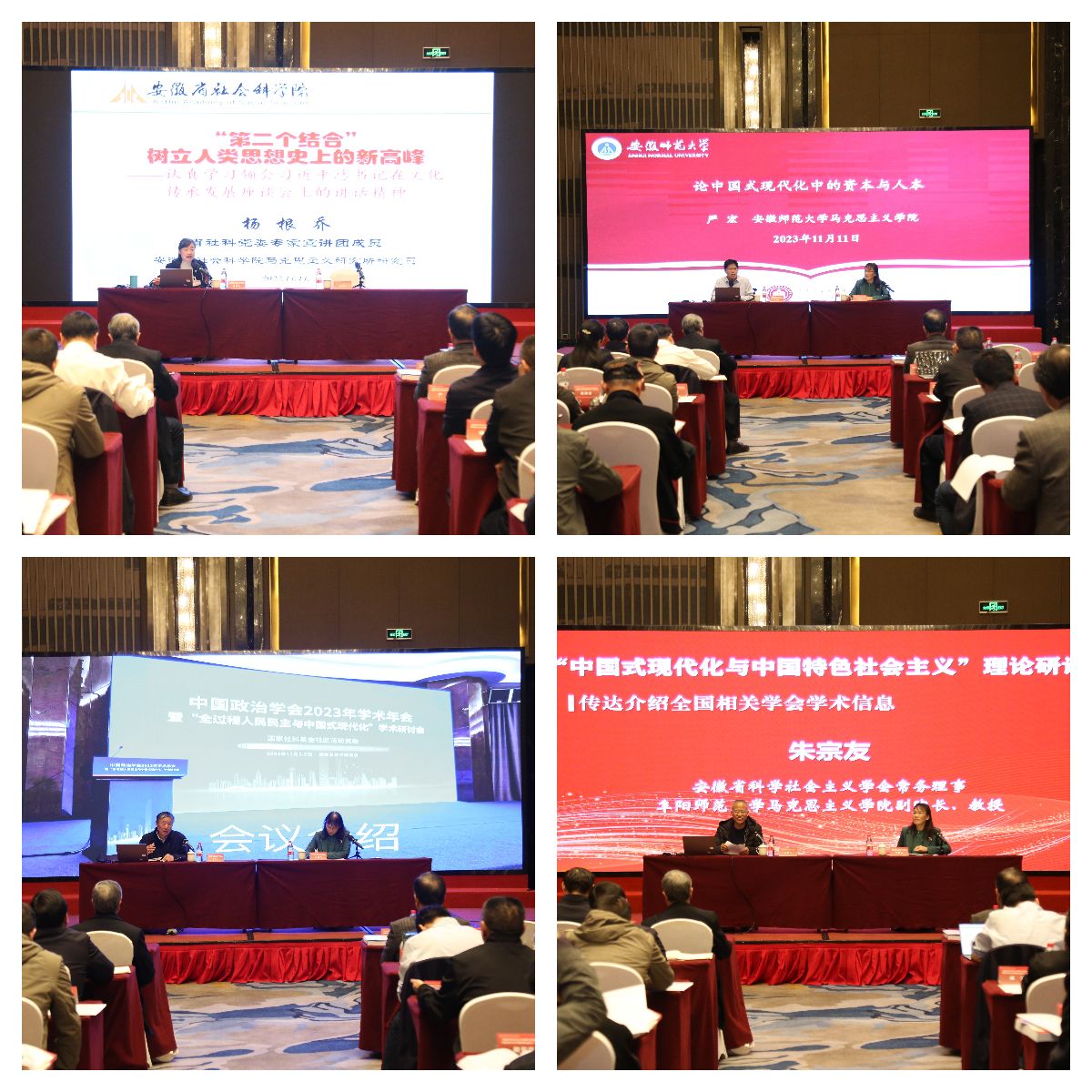 2023年11月11日,安徽省科学社会主义学会第九次会员代表大会暨“中国式现代化与中国特色社会主义”理论研讨会在我校召开。本次会议由安徽省科学社会主义学会、安徽师范大学、安徽省社会科学院中国特色社会主义研究中心主办,安徽师范大学马克思主义学院、安徽省社会科学院马克思主义研究所承办。来自省委讲师团、省社科院、各大高校、企事业单位的百余名专家、学者参与会议。会议开幕式由省科学社会主义学会会长、安徽省社会科学院马克思主义研究所原所长、研究员杨根乔主持。