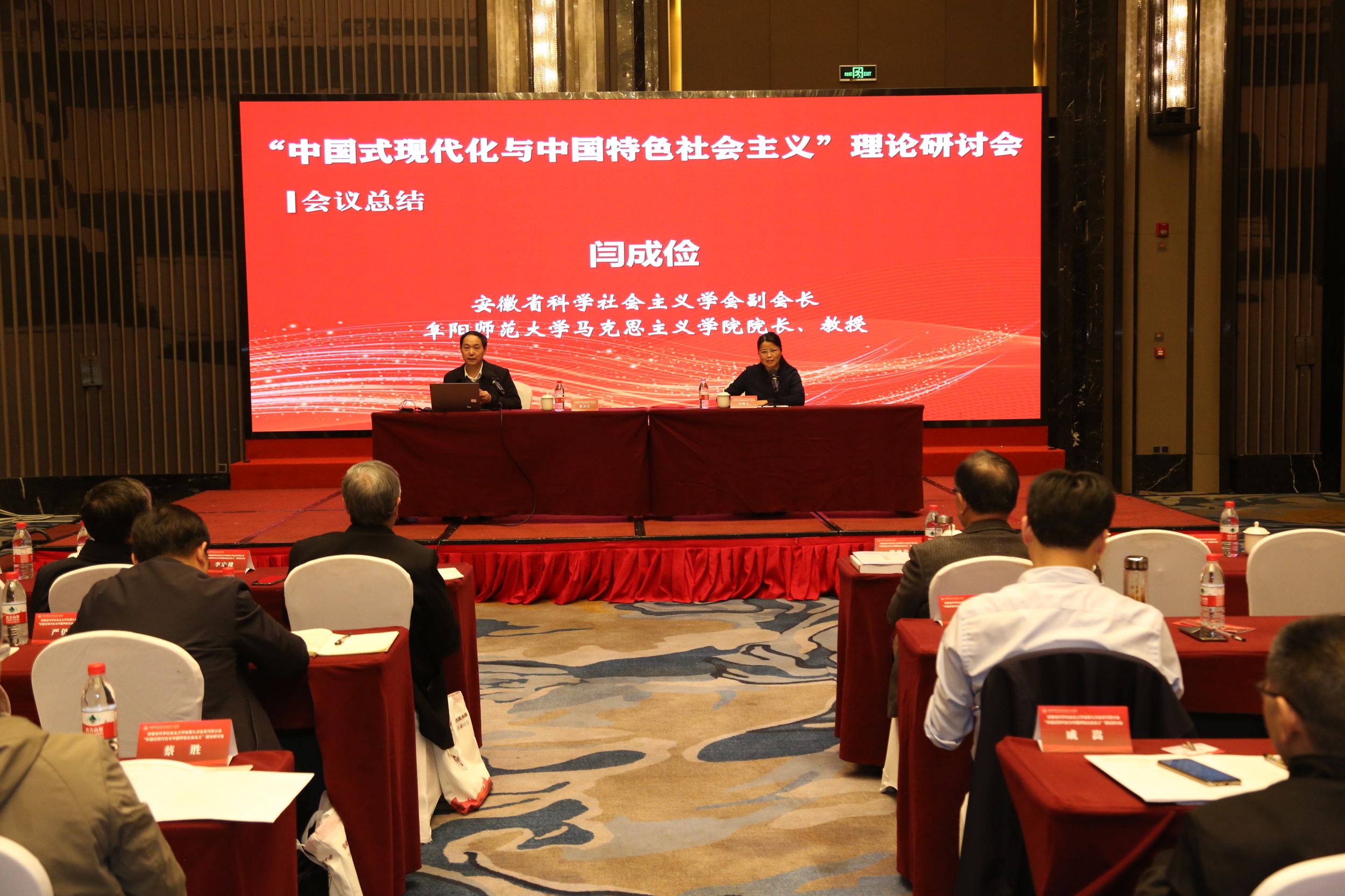 安徽省科学社会主义学会副会长、阜阳师范大学马克思学院院长教授闫成俭作会议总结。他指出,本次会议形式多样、内容充实,成效卓著,既顺利完成了学会换届工作,又进一步增进了与会专家学者的交流,为深入学习贯彻党的二十大精神、省委十一届五次全会精神,推动马克思主义中国化时代化提供了有力支持。