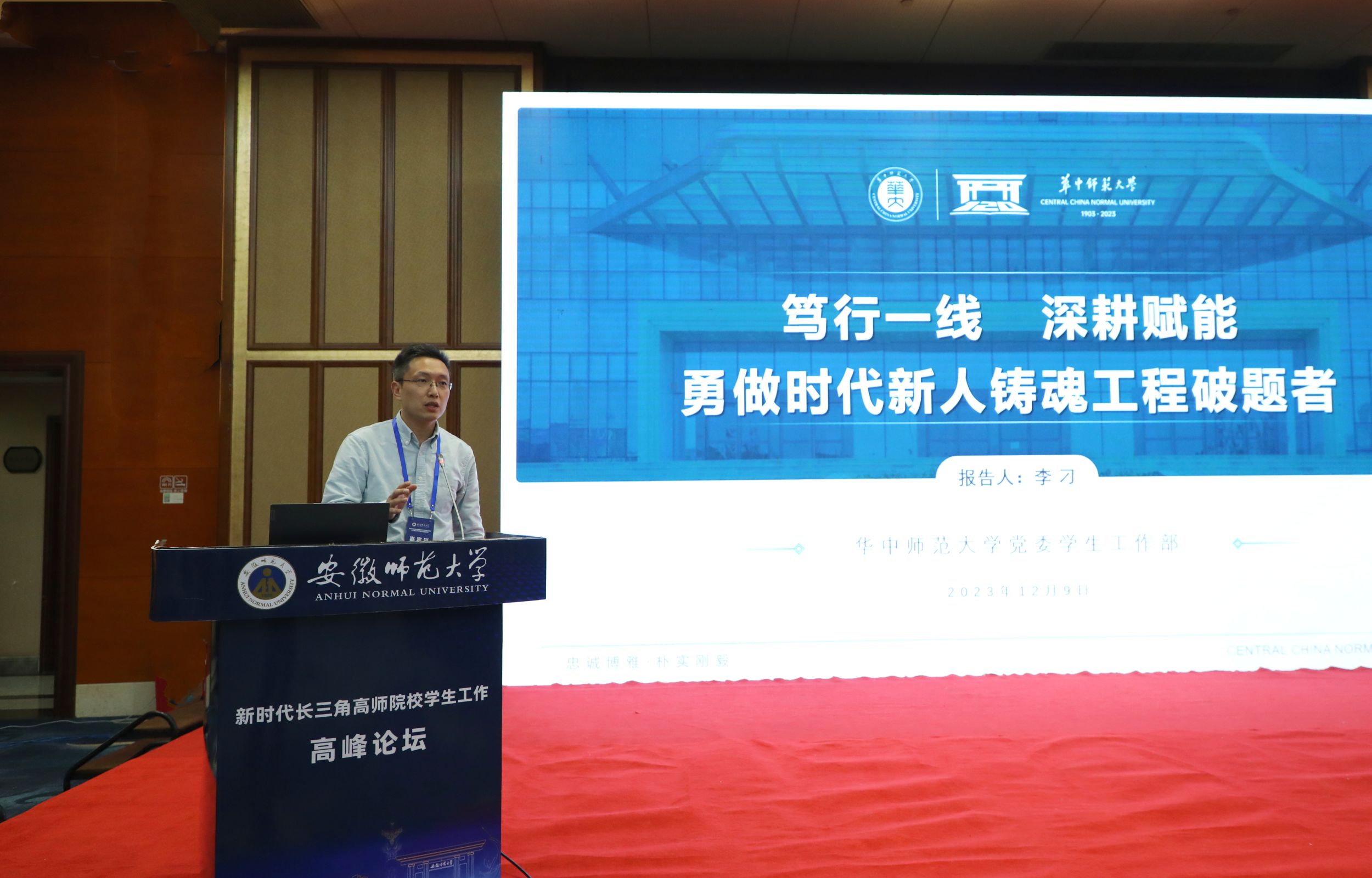 论坛上,北京师范大学学生工作部部长于小雷,华东师范大学学生(研究生)工作部部长赵健,华中师范大学学生工作部思政处处长兼人武部部长李刁,西南大学数学与统计学院党委副书记田春荣,上海师范大学学生工作部部长韩刚,南京师范大学团委书记、学生工作处副处长刘立为,浙江师范大学学生工作部部长王淑娉,江西师范大学学工部副部长潘子健,山东师范大学学生工作部部长吕晓勇,云南师范大学学生工作部部长张国华,阜阳师范大学学生处副处长吴雪影,安庆师范大学学生工作部部长夏建华,合肥师范学院学生工作部部长刁文彬,上海师范大学上海退役军人学院学生工作负责人孟盛益,围绕落实立德树人根本任务、推进时代新人铸魂工程、创新新时代全面培养的育人体系、加强学工队伍建设等议题,全面系统介绍了各自学校学生工作的整体情况、创新做法。