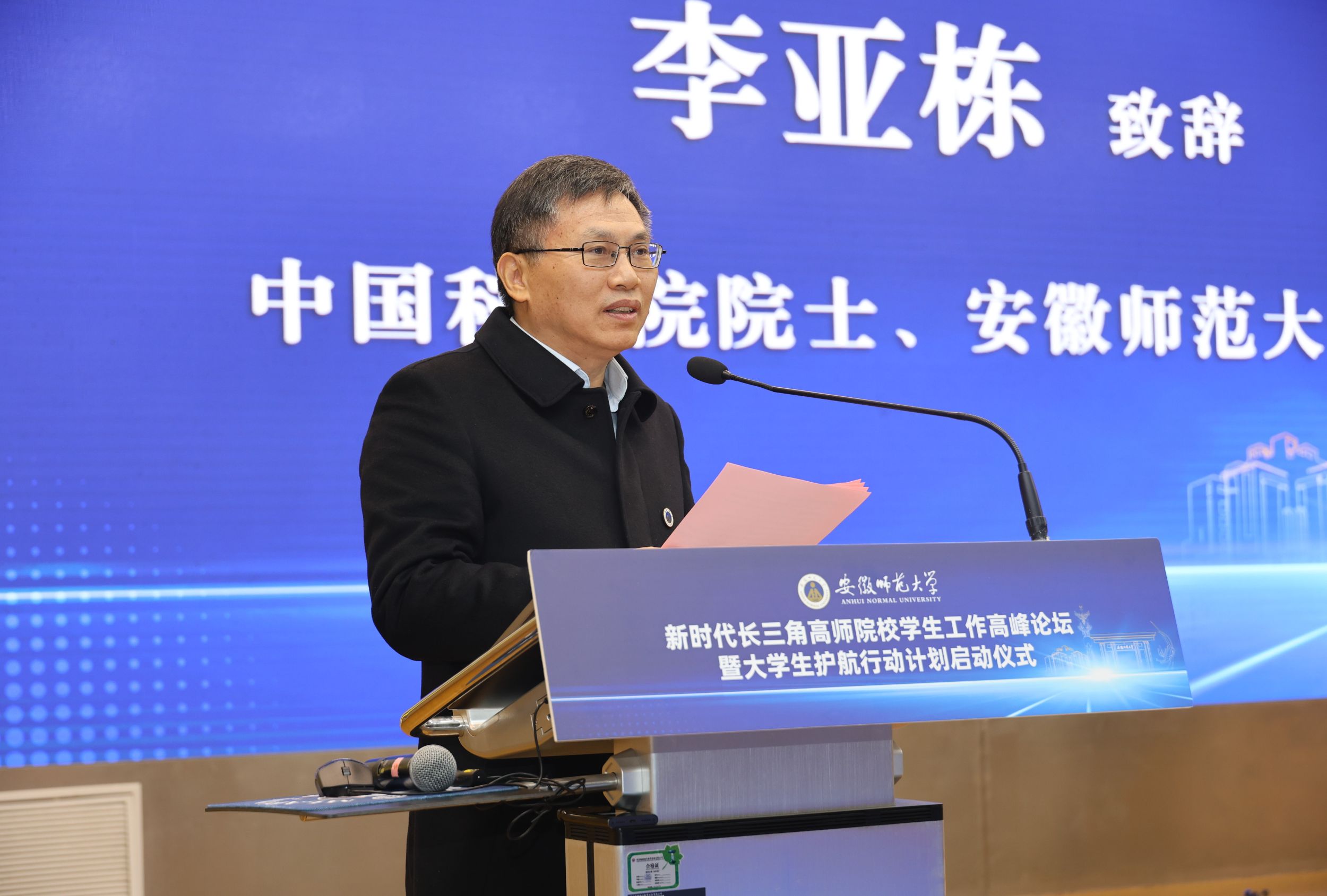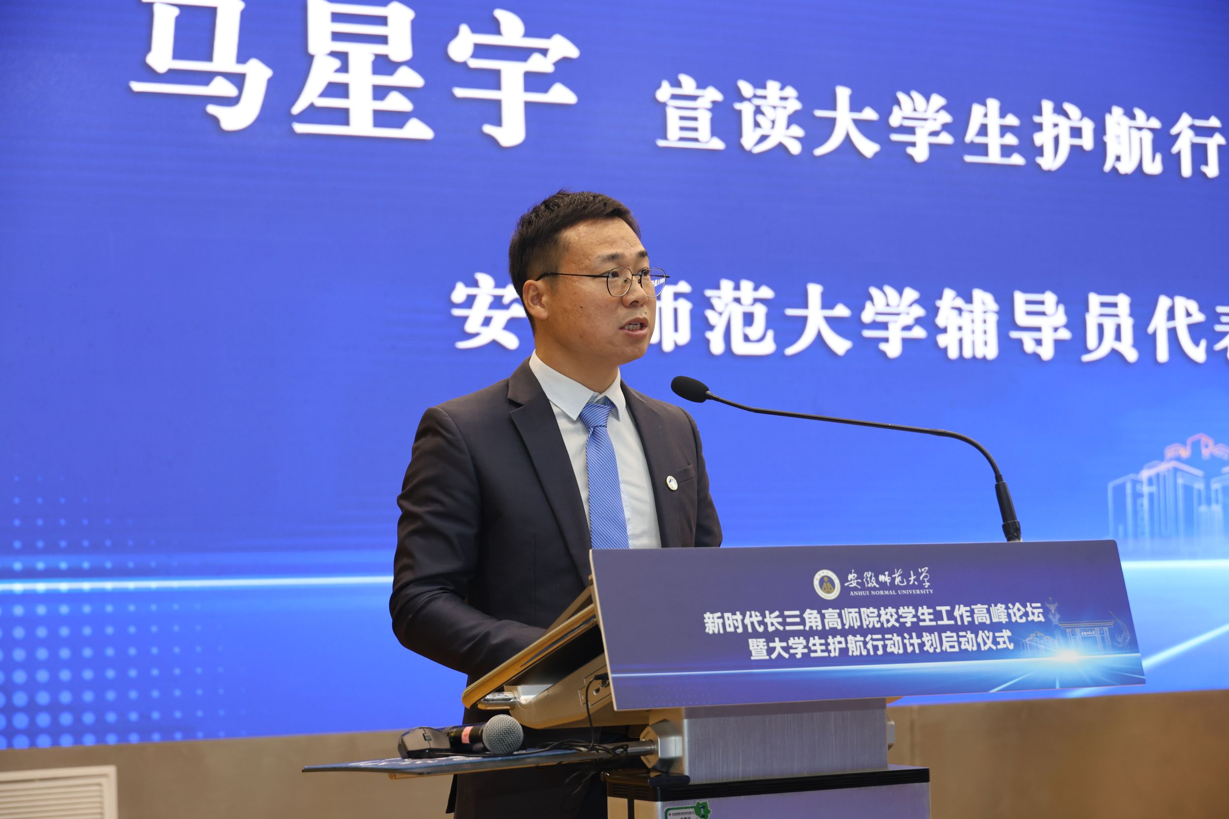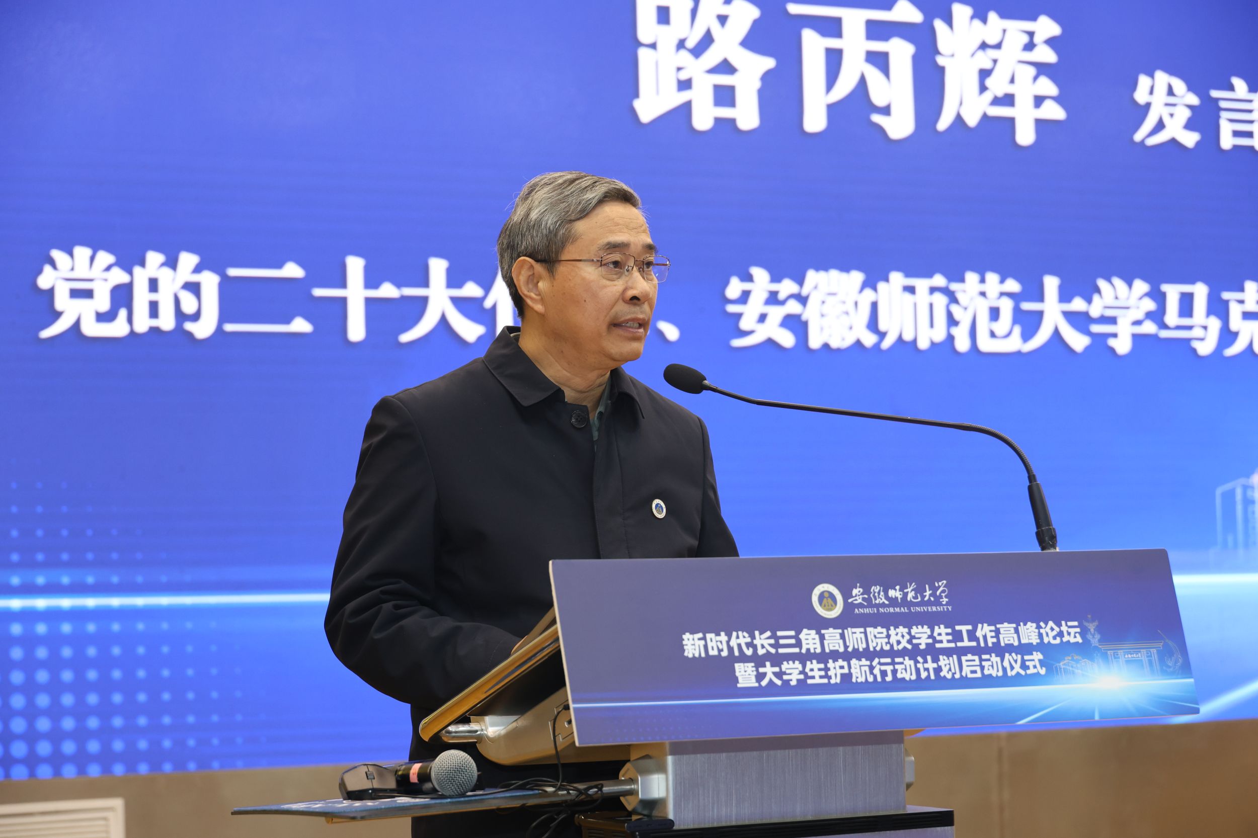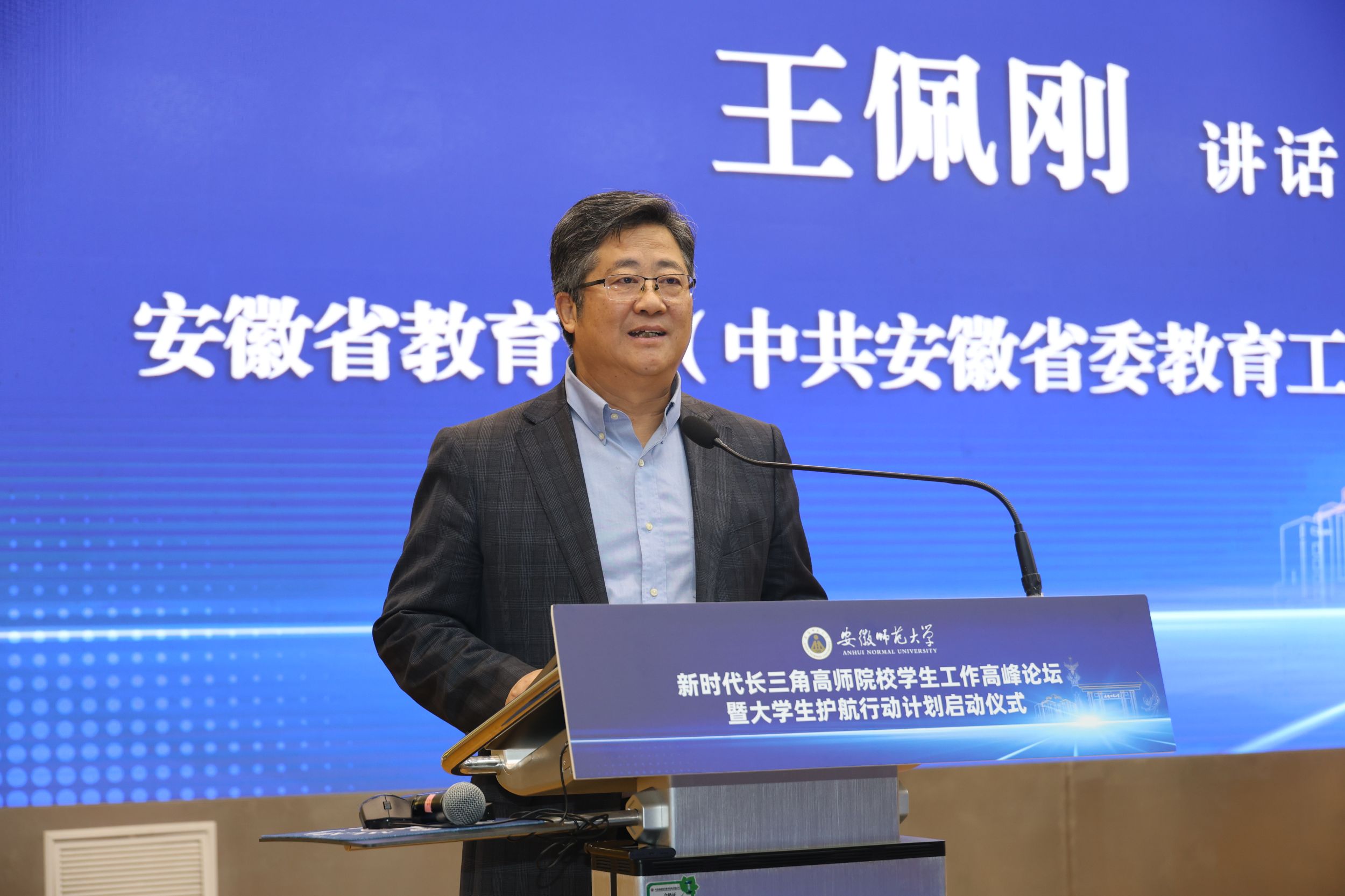 王佩刚代表省委教育工委、省教育厅讲话指出,“大学生护航行动计划”具有科学性、前瞻性和可实施性,是对学生成长规律、认知发展规律、教育规律的创造性探索,是高校学生安全工作从被动应对到主动作为的重要转变,体现了安徽师范大学对学生健康成长的使命担当和对新时代高校学生工作的创新引领。希望安徽师范大学以这次学生工作高峰论坛暨大学生护航行动计划启动仪式为契机,深入学习贯彻习近平总书记关于教育的重要论述,大力弘扬教育家精神,主动向兄弟省份师范院校学习求教,努力把“大学生护航行动计划”做实、做细、做出成效,着力打造具有推广价值的学生工作新模式,努力培养堪当强国建设、民族复兴大任的时代新人,为我省加快打造“三地一区”建设“七个强省”作出新的更大贡献。省委教育工委、省教育厅将一如既往的支持安徽师大的发展和创造性的探索,对“大学生护航行动计划”密切跟踪、及时总结,并对计划提供各方面的指导、支持和保障。
