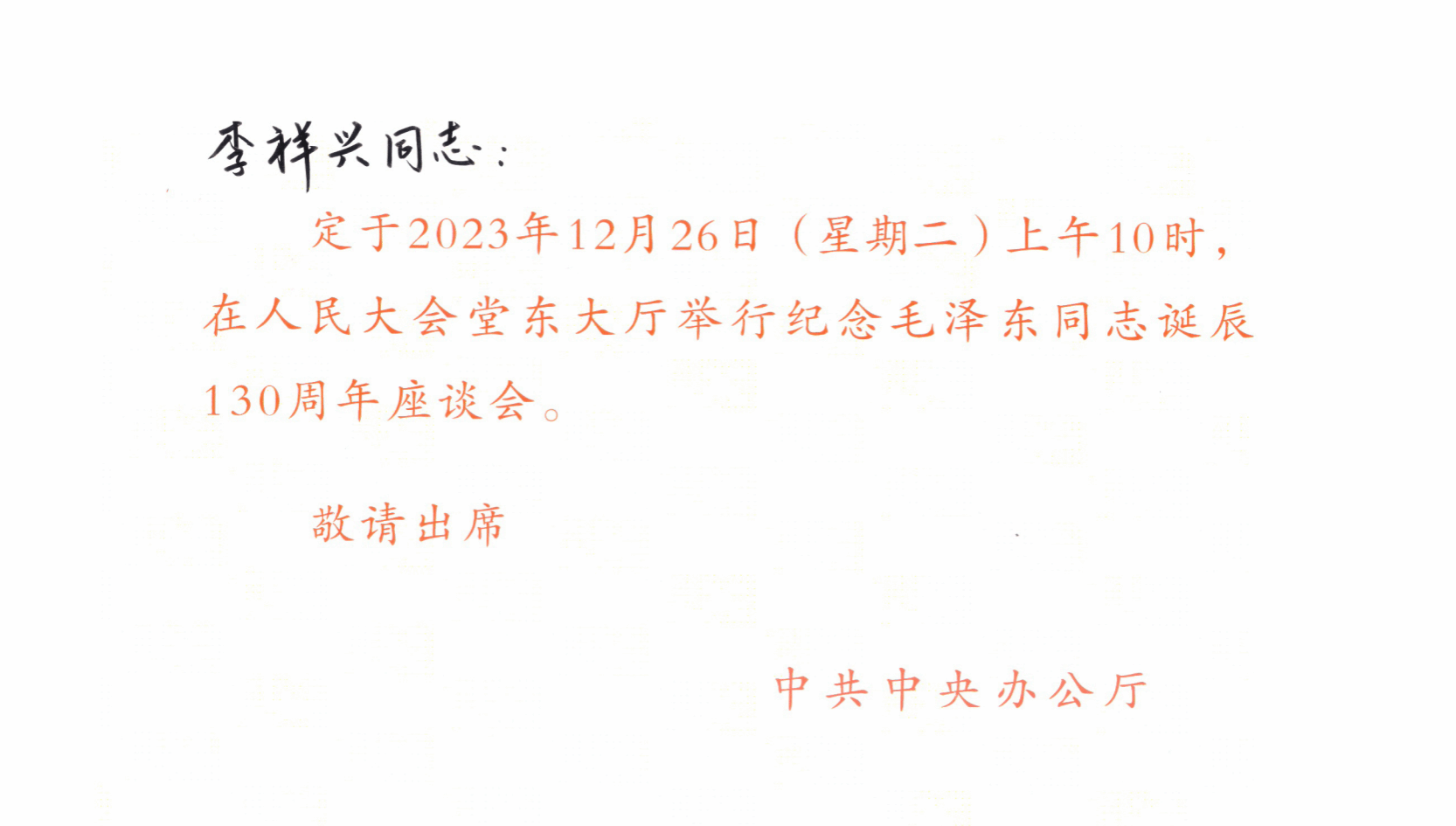 近日,马克思主义学院李祥兴教授撰写的《新中国成立初期毛泽东对中国现代化的系统思考》一文,作为安徽省唯一入会的论文入选“全国纪念毛泽东同志诞辰130周年学术研讨会”征文。根据中央有关文件精神,该学术研讨会由中央宣传部、中央党校(国家行政学院)、中央党史和文献研究院、教育部、中国社科院和中央军委政治工作部于2023年12月26日至28日在北京举办。李祥兴教授作为入会论文作者参加了学术研讨会,并受邀参加在人民大会堂举行的“全国纪念毛泽东同志诞辰130周年”座谈会,现场聆听习近平总书记在纪念毛泽东同志诞辰130周年座谈会上的讲话。