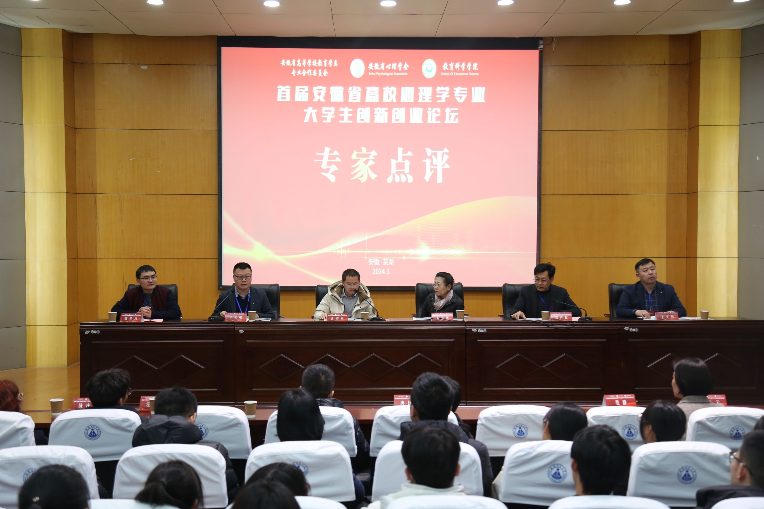 3月2日至3日,安徽省首届高校心理学专业大学生创新创业论坛在安徽师范大学赭山校区举行,中国心理学会理事长、教育部高等学校心理学类专业教学指导委员会秘书长苏彦捷教授出席论坛并致辞。本次论坛由安徽省高等学校教育学类专业合作委员会、安徽省心理学会、安徽师范大学教育科学学院联合主办,安徽师范大学教育科学学院承办;设“心理学实验设计”“现实问题解决”“心理学产品设计”“心理科普视频”四个分论坛。来自全省11所高校的35个参赛团队经初赛选拔进入现场展示环节。本次论坛特别邀请北京大学苏彦捷教授、华东师范大学李先春教授、南京大学唐日新教授、南京师范大学王云强教授、河海大学汪祚军教授、山东师范大学王大伟教授、浙江师范大学李新宇教授以及省内高校相关专家担任评委。安徽师范大学学术副校长辛涛教授、教务处处长崔光磊教授、研究生院院长桑青松教授,安徽省心理学会理事长葛明贵教授,教育科学学院领导班子成员等出席论坛开幕式。开幕式由教育科学学院副院长韩建涛主持。