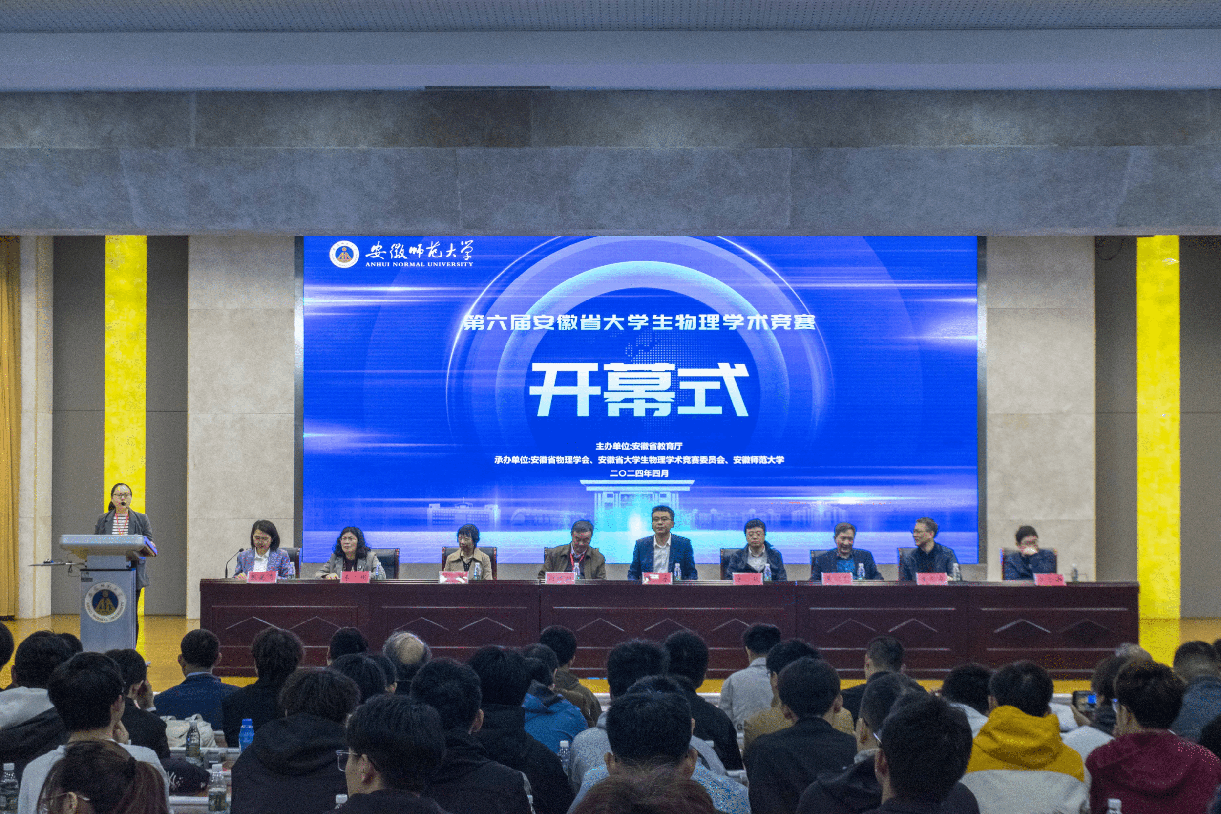 4月19日至21日,由安徽省教育厅主办,安徽省物理学会、安徽省大学生物理学术竞赛委员会和安徽师范大学物理与电子信息学院共同承办的2024年安徽省大学生物理学术竞赛在我校举办,来自安徽省内19所高校的400余名师生参加了此次竞赛。校党委常委、副校长任永出席开幕式并致辞。