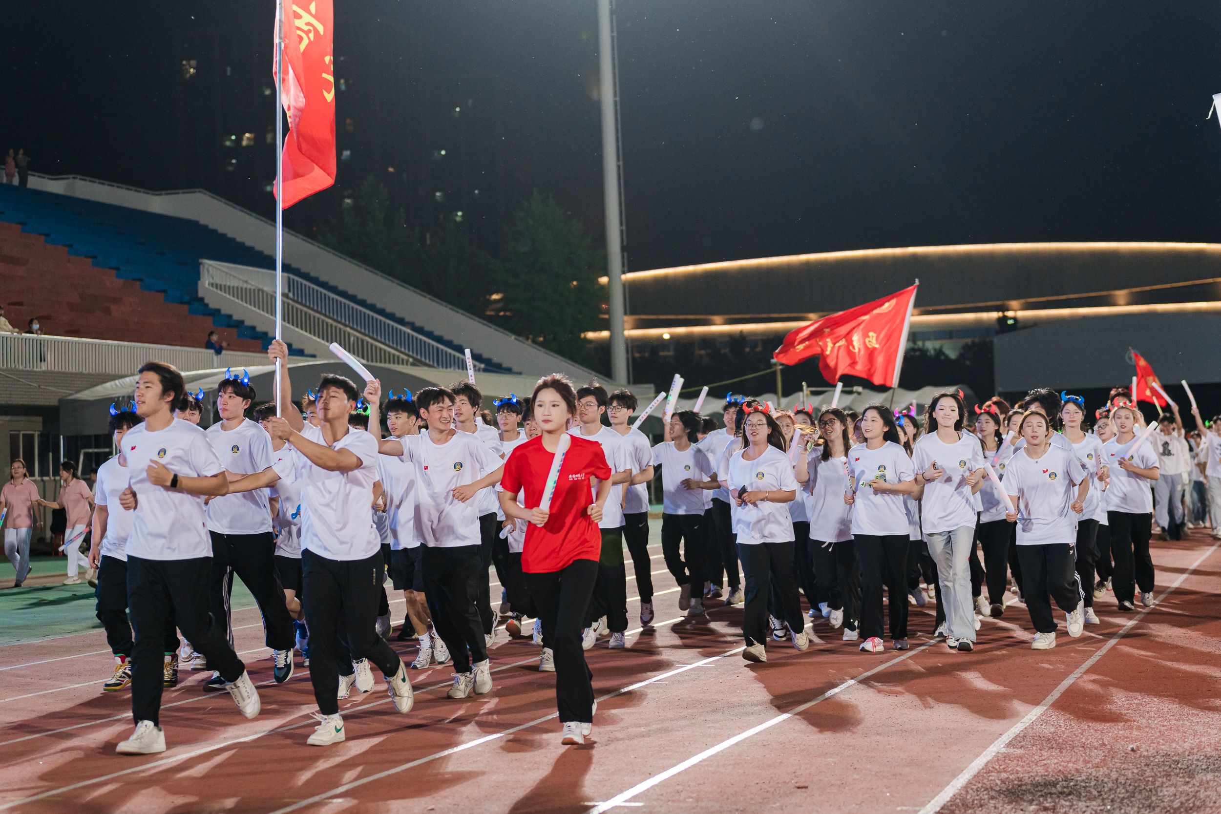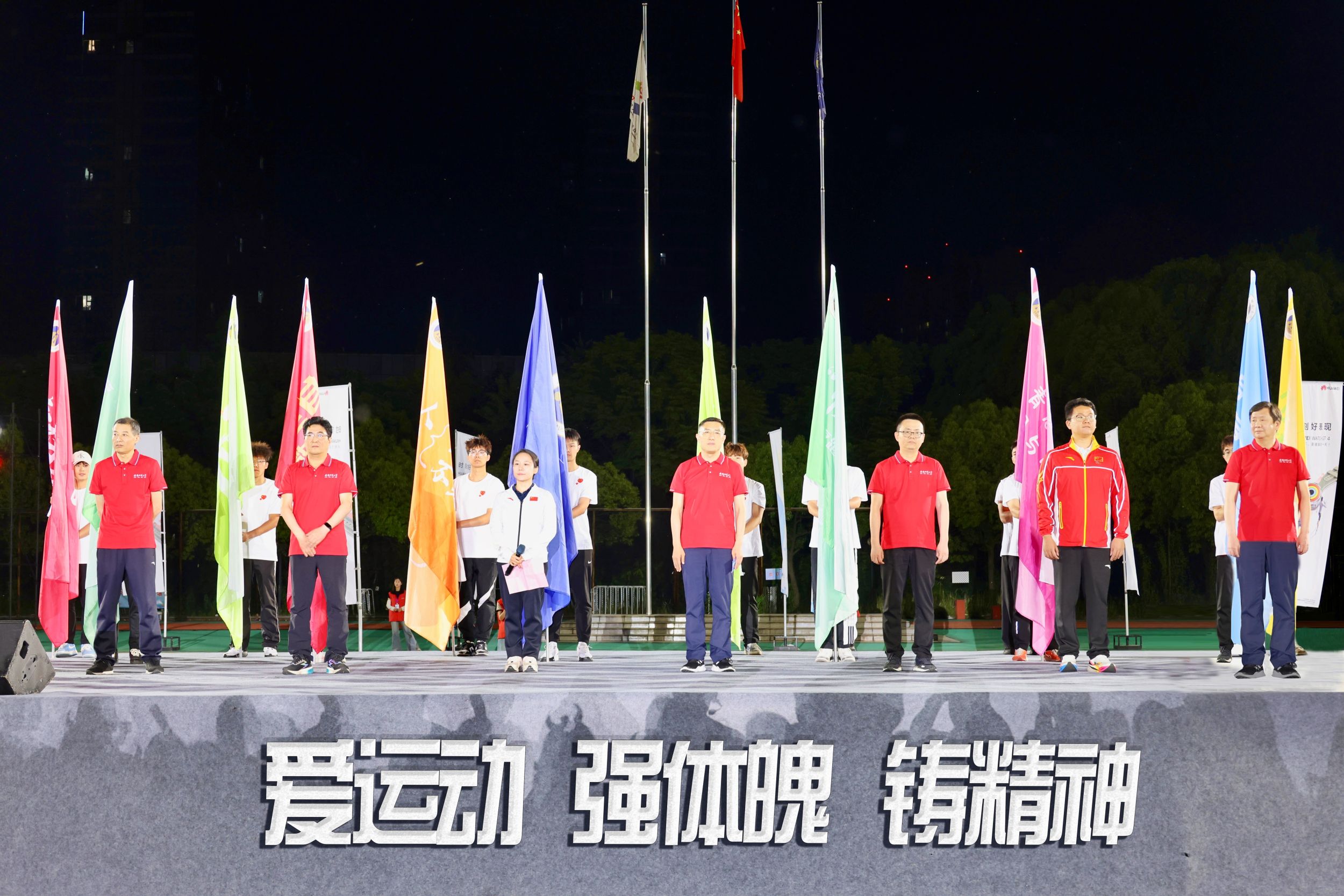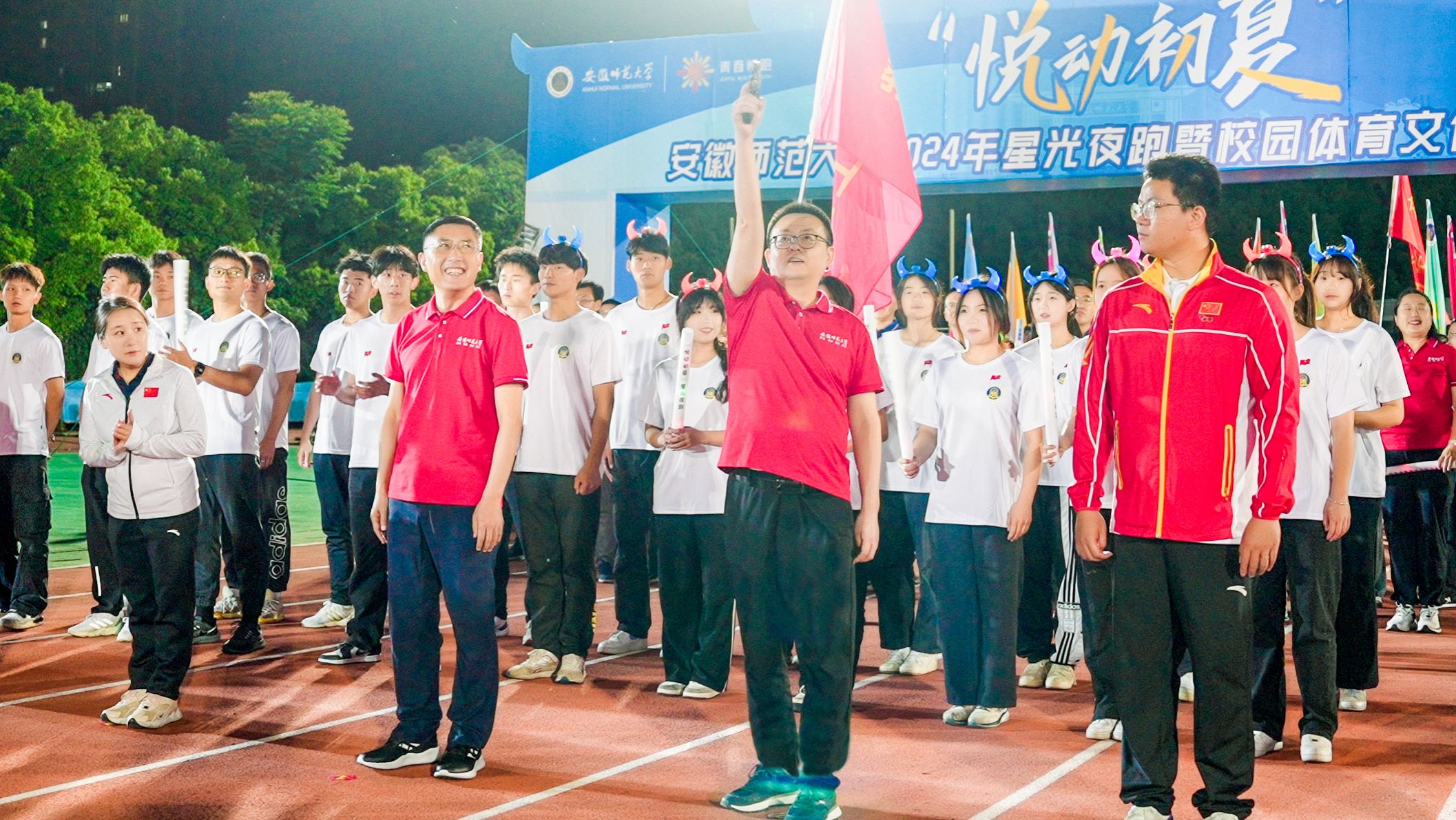 5月15日晚,学校在花津校区北体育场举行2024年“悦动初夏”星光夜跑暨校园体育文化节启动式。校领导张立驰、熊宇杰、高峰、胡靖,校党委常委、组织部部长朱为民,两届奥运会冠军、体育学院青年教师邓琳琳,亚运会冠军、体育学院青年教师顾雪宋,校体育运动委员会全体成员,学校各部门、各学院2000余名师生参加活动。