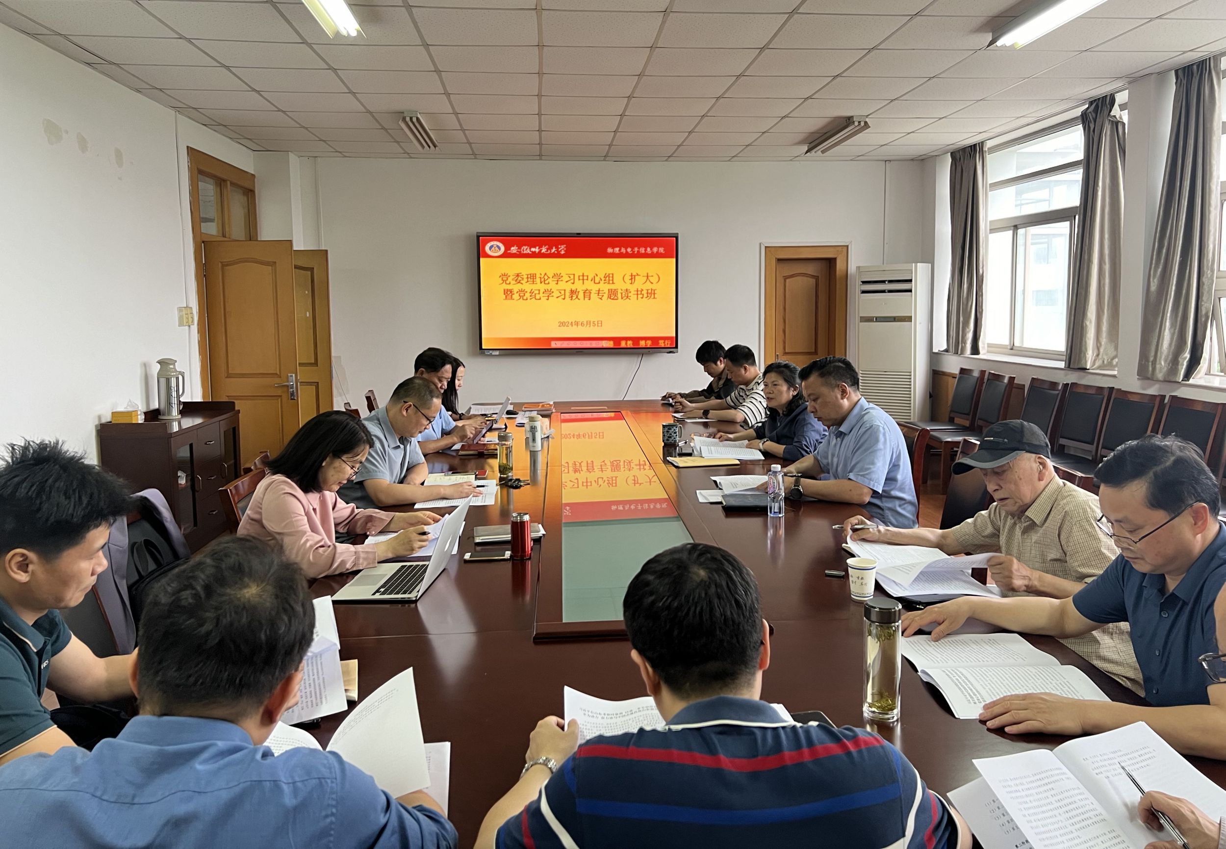 6月5日下午,物电学院召开党委理论学习中心组(扩大)学习会暨党纪学习教育专题读书班。院领导班子成员、党委委员、纪委委员、党支部书记参加会议。院党委书记李娟主持会议。