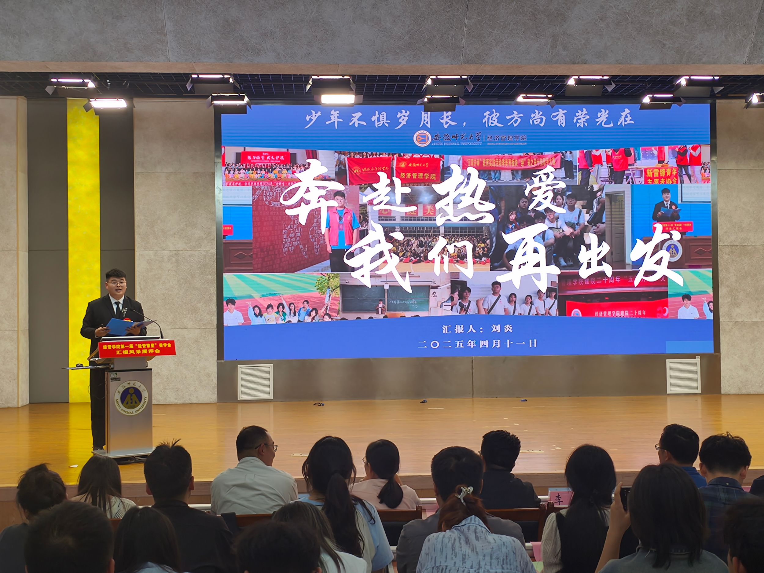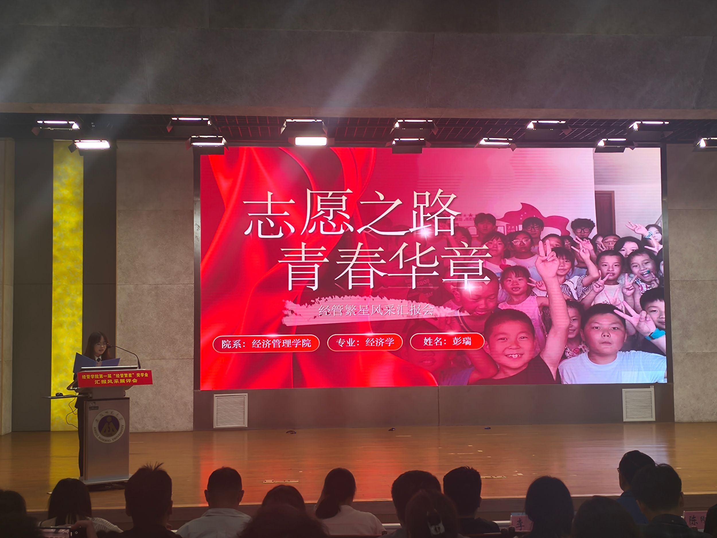 为资助奖励品学兼优,在学院学团组织和班级中表现优异、敬业奉献的学生骨干,激励学生骨干努力工作、积极服务同学发展,成为榜样作用强、朋辈引领力好的德智体美劳全面发展的新时代大学生。4月11日,经管学院花津校区理科大楼一楼报告厅举行第一届“经管繁星”奖学金汇报风采展评会。经管学院党委副书记陈刚锋,MBA学位点点长朱立冬,经济系系主任陈龙,院团委书记吕洋,全体专兼职辅导员参与本次汇报并担任评委。经管学院各年级各专业学生代表及大众评委现场观摩汇报。汇报由学生会主席团成员李子康主持。